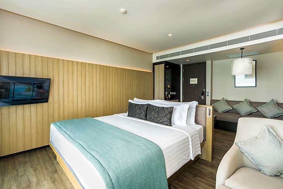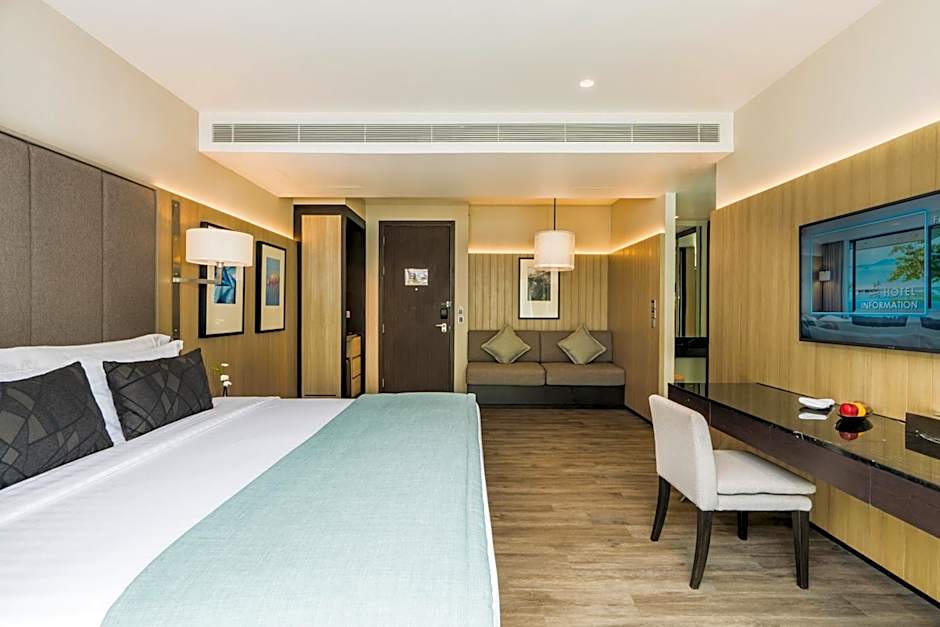 The spacious family room offers air conditioning, soundproof walls, a balcony with sea views as well as a private bathroom featuring a walk-in shower. The unit offers 2 beds.